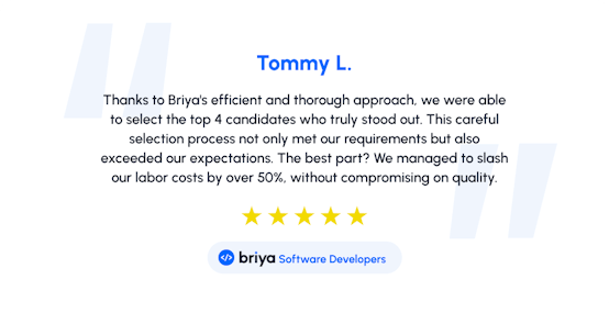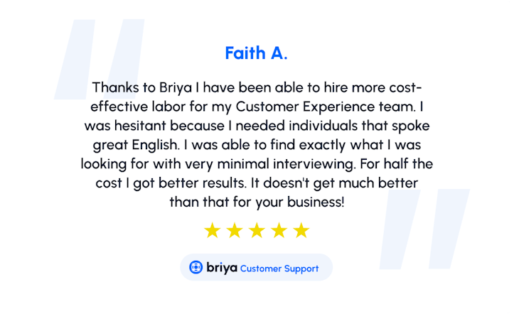 Briya is your solution for hiring top talent at up to 60% less than what you are current paying.